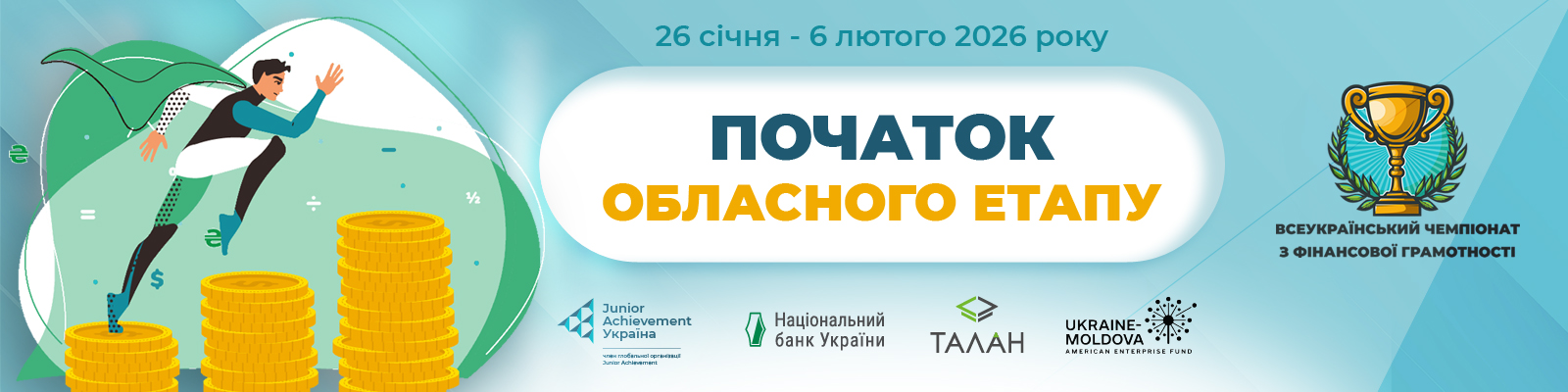 Відсьогодні стартує обласний етап Всеукраїнського чемпіонату з фінансової грамотності. Упродовж двох тижнів учасники та учасниці проходитимуть онлайн тестування на платформі Junior Achievement Ukraine.