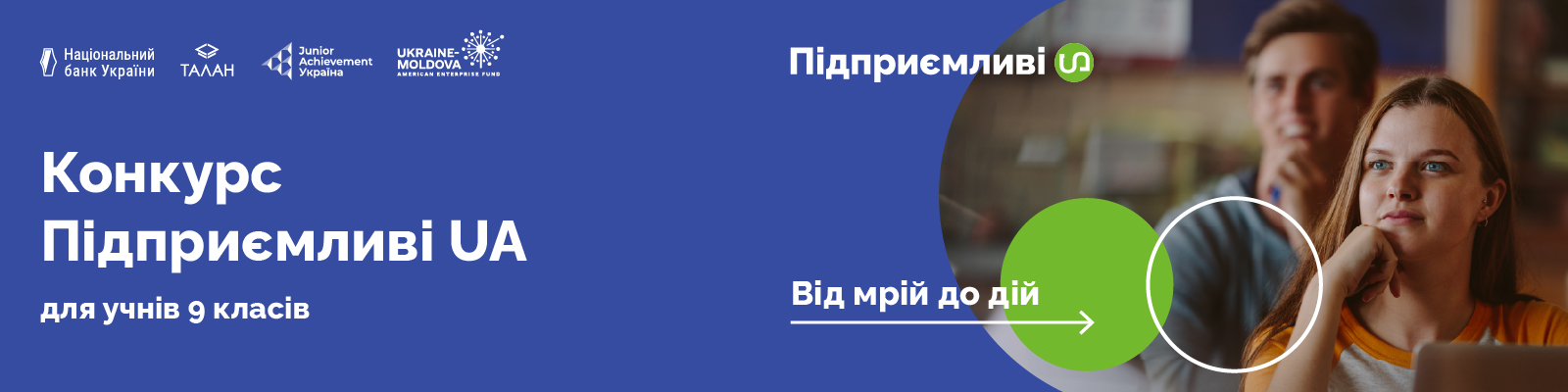 Національний банк України разом із Junior Achievement Ukraine оголошують про проведення у 2025-2026 навчальному році першого всеукраїнського конкурсу з підприємництва і фінансової грамотності “Підприємливі UA” для учнів 9 класів закладів загальної середньої освіти.