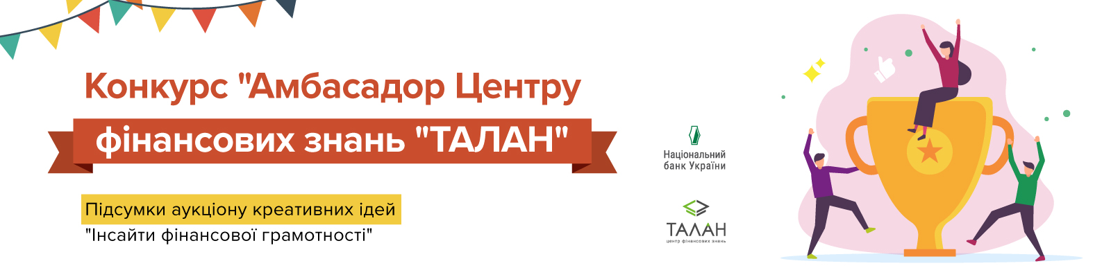 Вітаємо трьох переможців аукціону креативних ідей “Інсайти фінансової грамотності”, які отримають подарунки-сюрпризи від Центру фінансових знань “Талан”:
