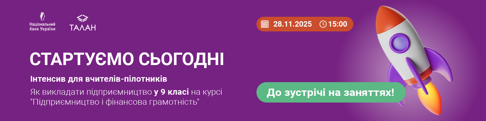 Сьогодні розпочинається дистанційний інтенсив для вчителів-пілотників 9 класів «Як викладати підприємництво у 9 класі на курсі "Підприємництво і фінансова грамотність"».