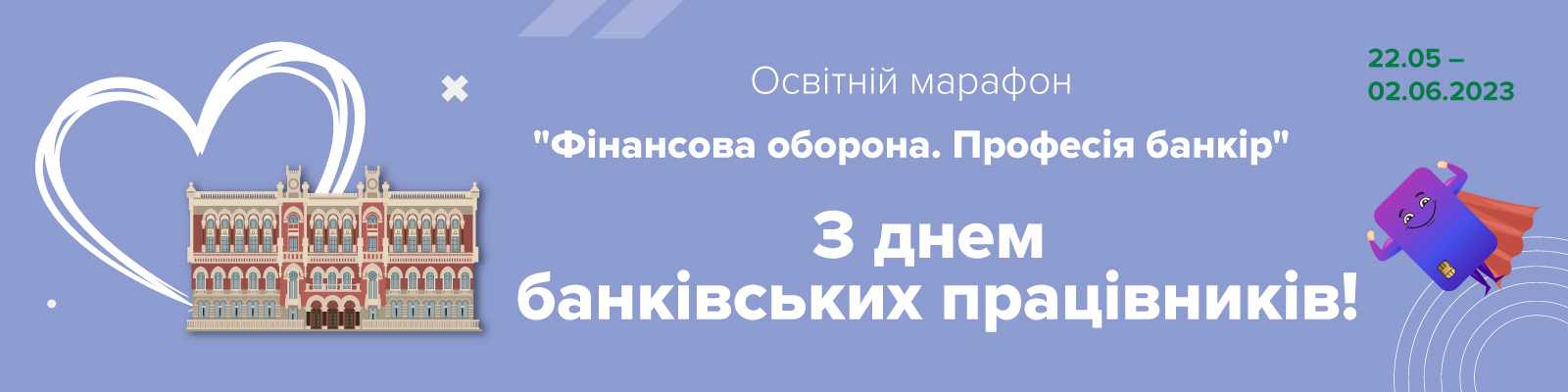 Із 22 травня до 2 червня 2023 року (з Дня банківських працівників до Дня захисту дітей) банки України спільно з Національним банком проведуть марафон заходів для дітей дошкільного та шкільного віку і стануть амбасадорами фінансової грамотності. Усього ми отримали близько 400 заявок від банківських працівників стати амбасадорами фінансової грамотності, відвідати заклади освіти (дитячі садочки та школи) в містах України та провести бесіди з дітьми або уроки з фінансової грамотності, щоб познайомити їх із професією банкіра в різних містах України.