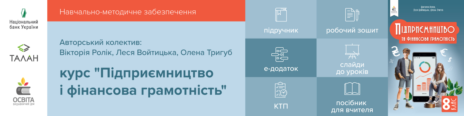 Для детальнішого знайомства з матеріалами від фахівців Національного банку України приєднуйтеся до курсу з підвищення кваліфікації «Особливості змісту і методики навчання предмета “Підприємництво і фінансова грамотність” у 8 класі».