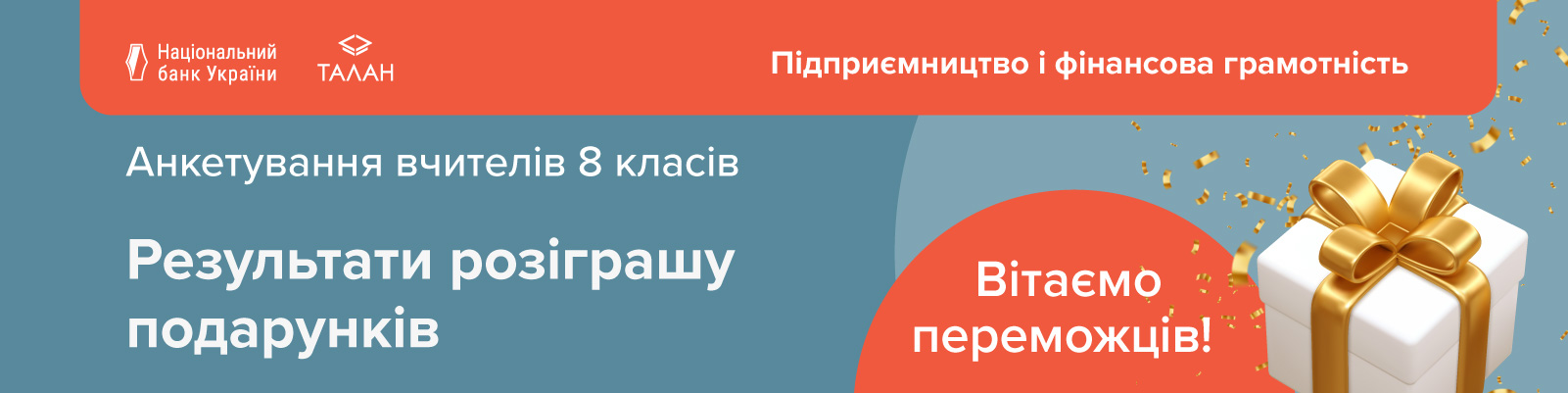 Маємо чудову новину – сьогодні ми оголошуємо результати розіграшу подарункових боксів серед учителів 8 класів, які долучилися до анкетування, що тривало з 18 лютого до 16 березня 2026 року.