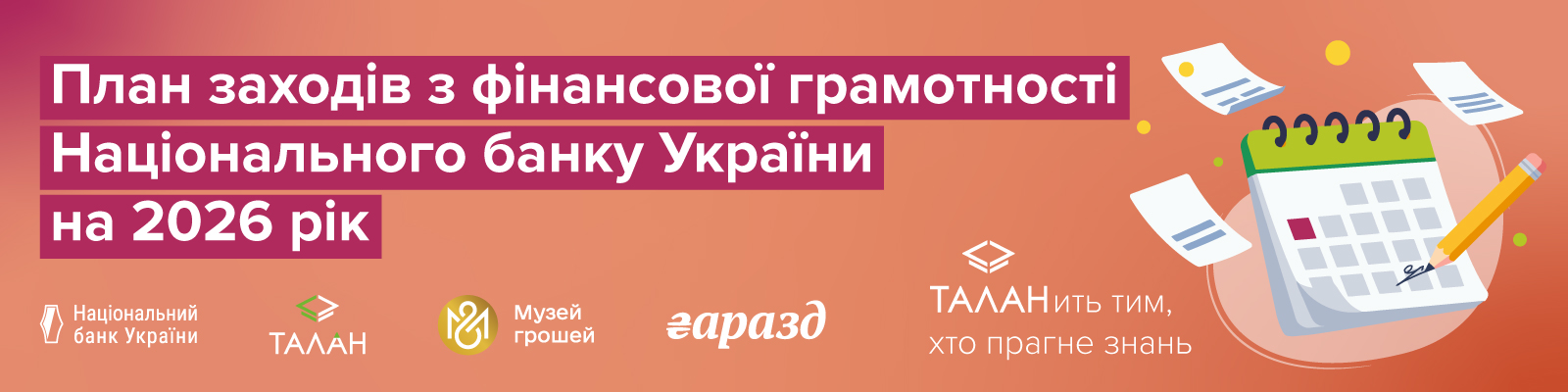 Щоб ви змогли завчасно спланувати свою діяльність та долучитися до наших активностей, представляємо план заходів з фінансової грамотності Національного банку України на 2026 рік!