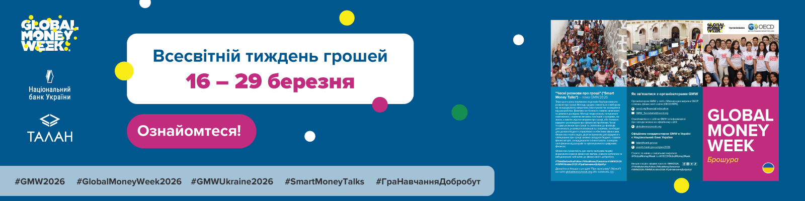 Офіційні хештеги кампанії: #GMW2026 #GlobalMoneyWeek2026 #SmartMoneyTalks #GMWUkraine2026 #ГраНавчанняДобробут