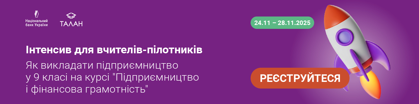 Запрошуємо зареєструватися на інтенсив учителів, які у 2025/2026 навчальному році викладають курс «Підприємництво і фінансова грамотність» у пілотних 9 класах.