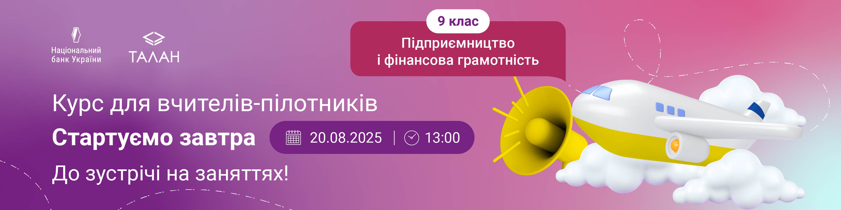 Завтра, 20 серпня 2025 року, у Національному банку України розпочинається дистанційний курс для педагогів, які з 01 вересня 2025 року викладатимуть предмет «Підприємництво і фінансова грамотність» у пілотних 9 класах НУШ.